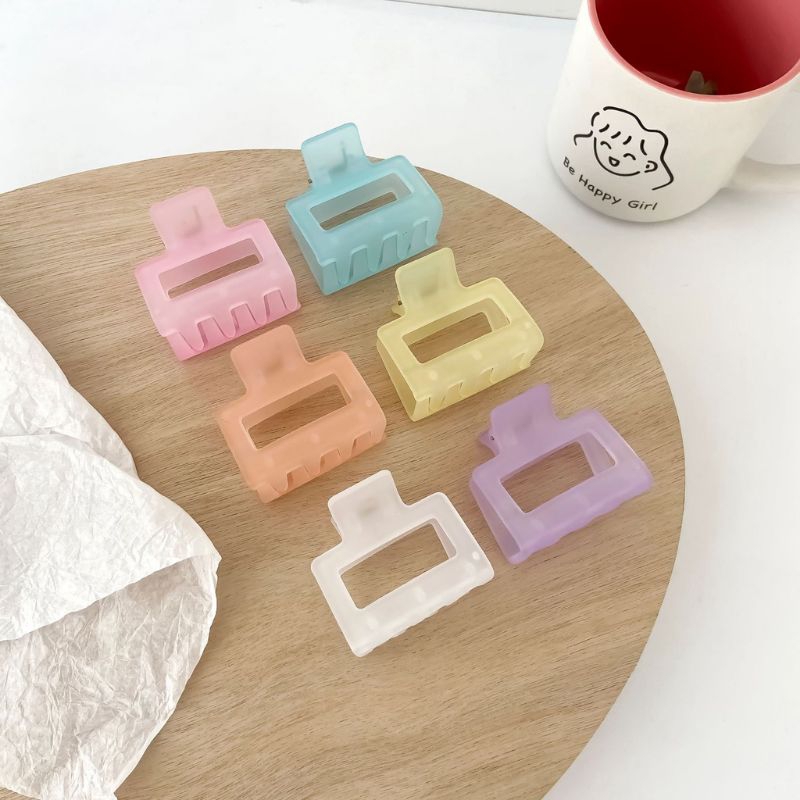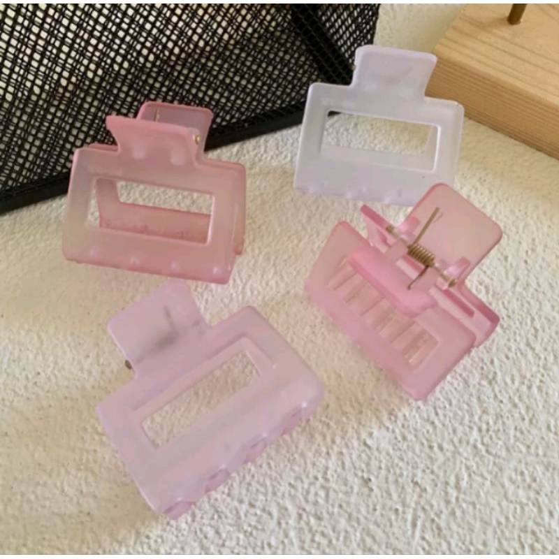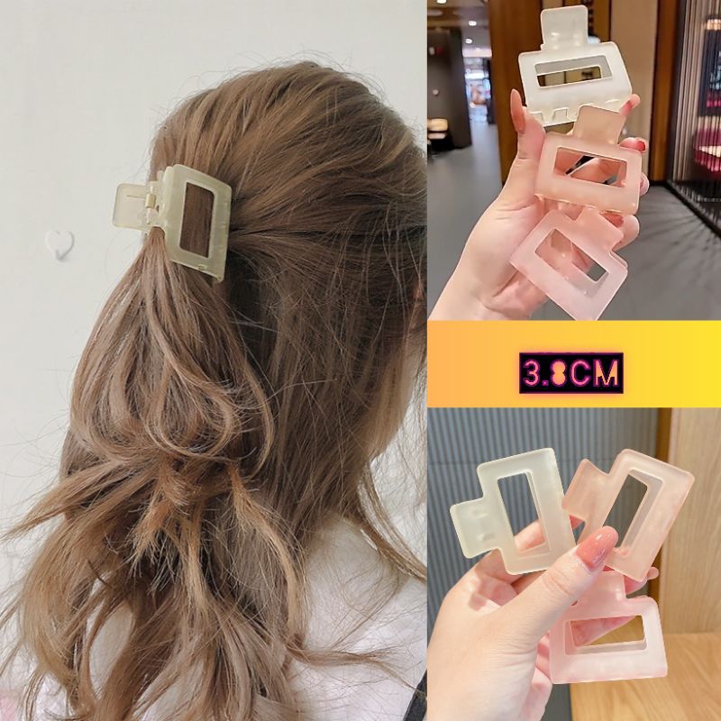 Jepit Rambut Model Kotak Bolong Mini 3.8cm Warna Salem Bubble Gum dengan Handle Jedai Transparan Matte Square Hair Claw Clips