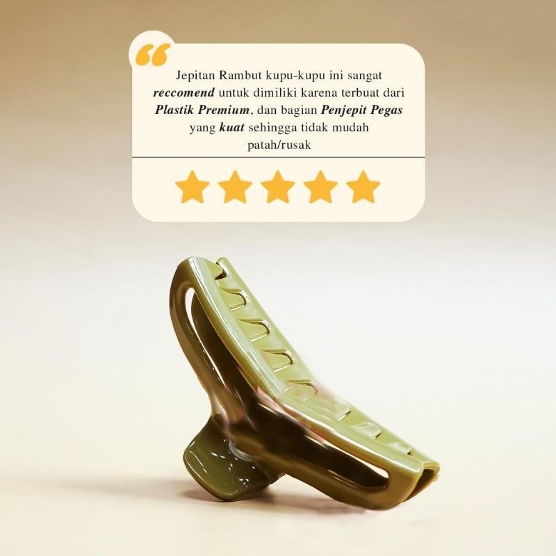 Jepitan Kupu ini memiliki 9 Cakar yang diminati karena sangat mencakup keseluruhan rambut saat dijepit. Terbuat dari High Quality Plastik Akrilik, serta bagian Pegas yang kuat Jepitan ini tidak mudah rusak, ataupun patah saat dipakai dan terjatuh. Bagian pegasnya pun sangat flexible, Anda akan terasa nyaman saat memakainya. Jepitan ini sangat cocok untuk segala tipe rambut, serta jepitan ini memberikan nilai tambah pada penampilan Anda :)