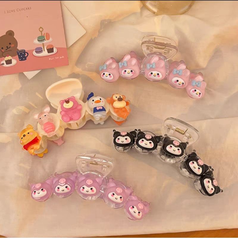 Jepit Rambut Mutiara Korea Acrylic 7.5cm Aksen Mutiara With Karakter Warna Bubble Gum Hair Claw Clips
