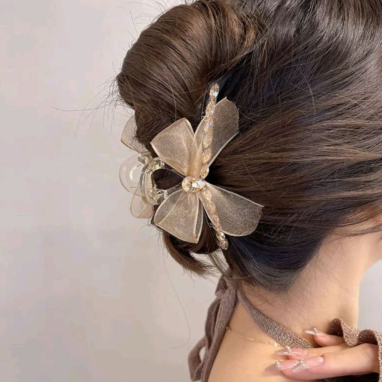 Jepit Rambut Pita Transparan Mutiara JUMBO 11cm Jepitan Rambut Salon Korea Jedai Impor Ribbon Pearl Hair Claw Clip