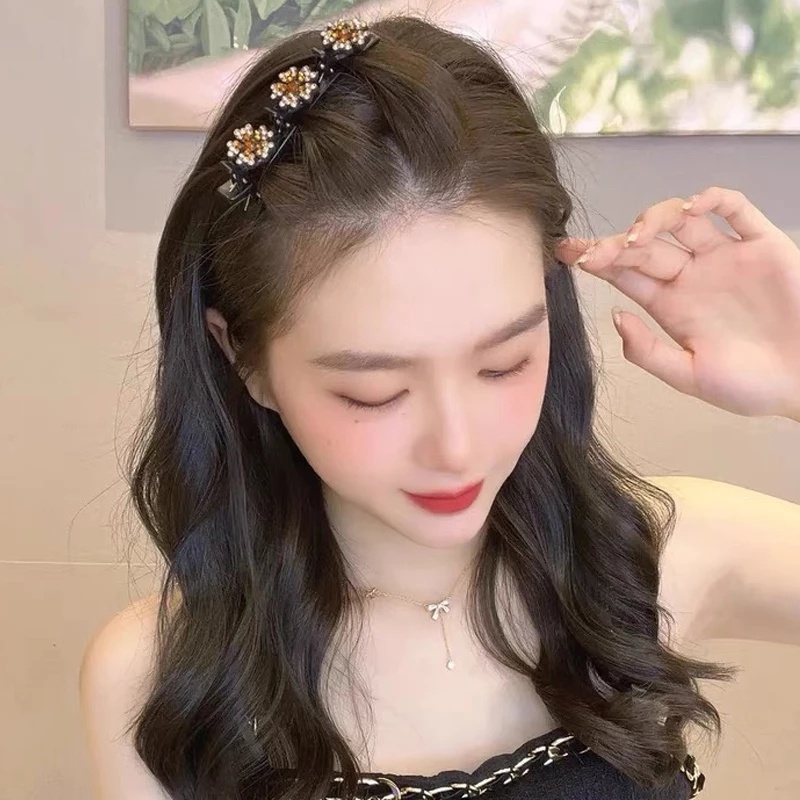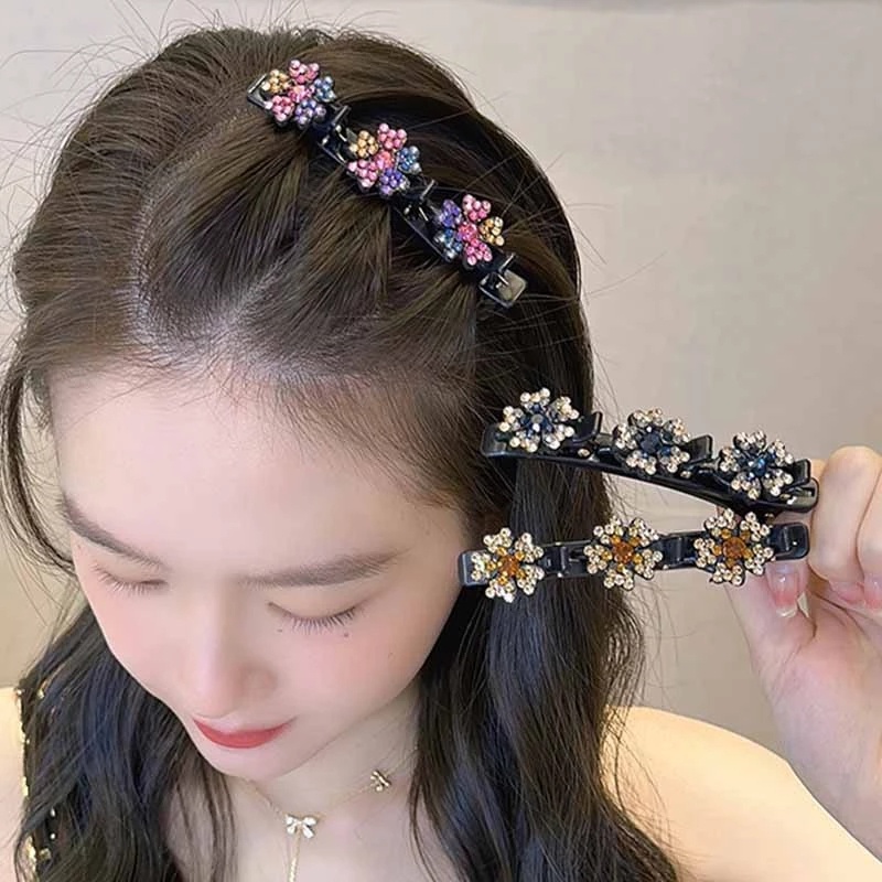 Detail Jepit Rambut Poni Samping Desain Bunga Aksen Batu Kristal Berkilau