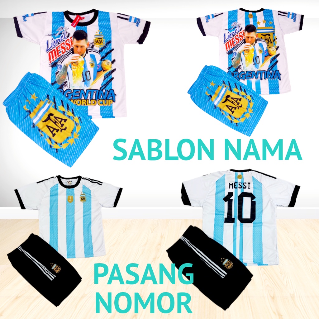 Detail JERSEY ARGENTINA/SETELAN BAJU BOLA MESSI ARGENTINA USIA 2-12THN