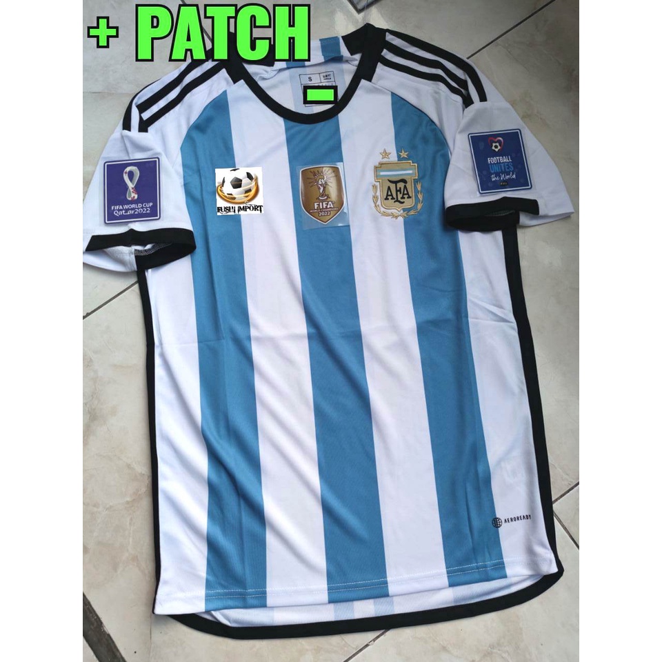 Olahraga & Outdoor > Sepak Bola, Futsal, & Sepak Takraw > Pakaian Sepak Bola, Futsal > Jersey Baju Bola Argentina Home Bintang 2 Full Patch Piala Dunia World Cup 2022 Grade Ori