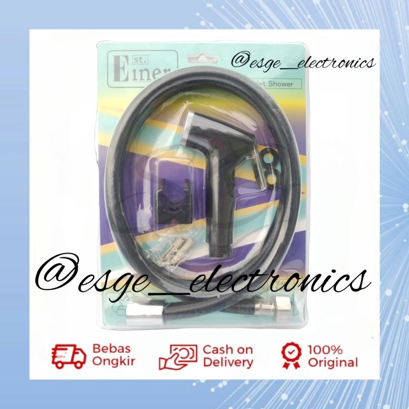 e.jet shower black (st einer) bahan : pvc tebal / bukan pvc biasa panjang selang : 120cm (dalaman selang kuningan) selang terbuat dari bahan tebal sehingga tahan untuk berbagai tekanan air (ujung selang terbuat dari stainless steel sehingga akan lebih awet)
