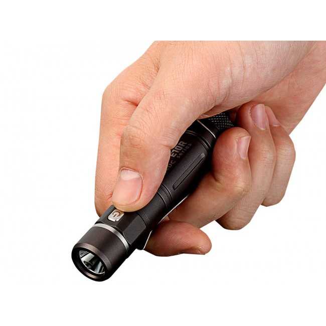Tipe LED Cree XPG3-S4 Lumens 650 Lumens Jarak Penerangan 130 meter Tipe Baterai 1 x 14500 / 1 x AA Material Reflektor: Relflektor Aluminium Lensa: Kaca Mineral Berlapis Tubuh: Aluminum Alloy Aero Grade Dimensi Panjang Tubuh: 97.7 mm Diameter Kepala: 19.1 mm Diameter Tubuh: 19 mm Lain-lain Tahan Air: IPX8 Tahan Benturan: 2 m