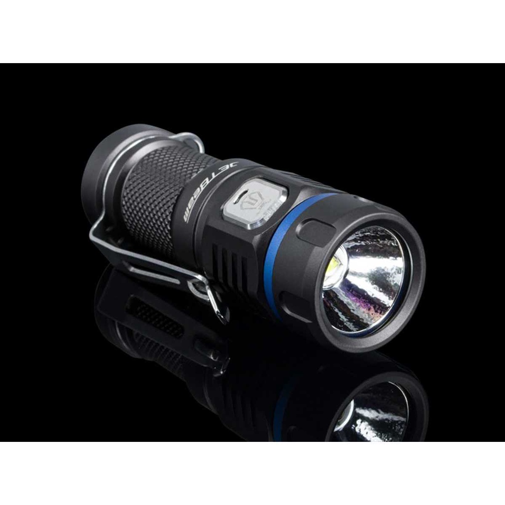 Fitur -Senter LED ini memiliki ukuran yang kecil dengan bobot yangringan. -Dilengkapi dengan Luminus SST40 LED, dengan LED tersebut senter JETBeam ini mampu menghasilkan cahaya hingga 990 lumens. -Senter ini sudah dilengkapi dengan baterai isi ulang RCR123A yang bisa Anda isi ulang menggunakan kabel micro USB. -Juga bisa menggunakan baterai 16430 sehingga mudah diganti. -Terbuat dari bahan paduan aluminium berkualitas yang dijamin kuat serta awet untuk penggunaan jangka panjang. -Tahan Air Senter ini memiliki sertifikasi anti airIPX-8 yang dapat digunakan dibawah guyuran hujan serta di kedalaman air maksimal 2 meter.