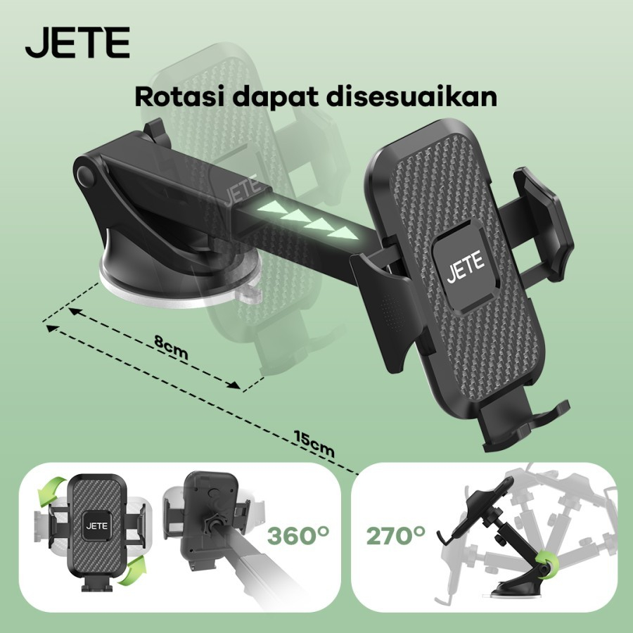- JETE H10B Series merupakan holder yang tepat untuk penggunaan di mobil. Khususnya untuk navigasi dalam perjalanan. Desainnya sangat ergonomis dan mudah dibawa ke mana saja. Bobotnya ringan dan terbuat dari material yang kokoh. Sehingga tidak mudah rusak, pecah, atau patah.