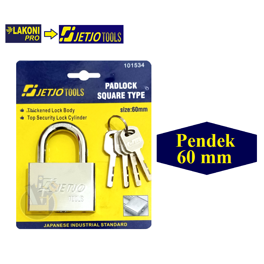 Detail JETJO TOOL Kunci Gembok Leher Pendek 60 mm 60mm PadLock Short Padlock Short Square 60mm Pengaman Pintu Rumah Kendaraan Gembok Pager LAKONI Pro