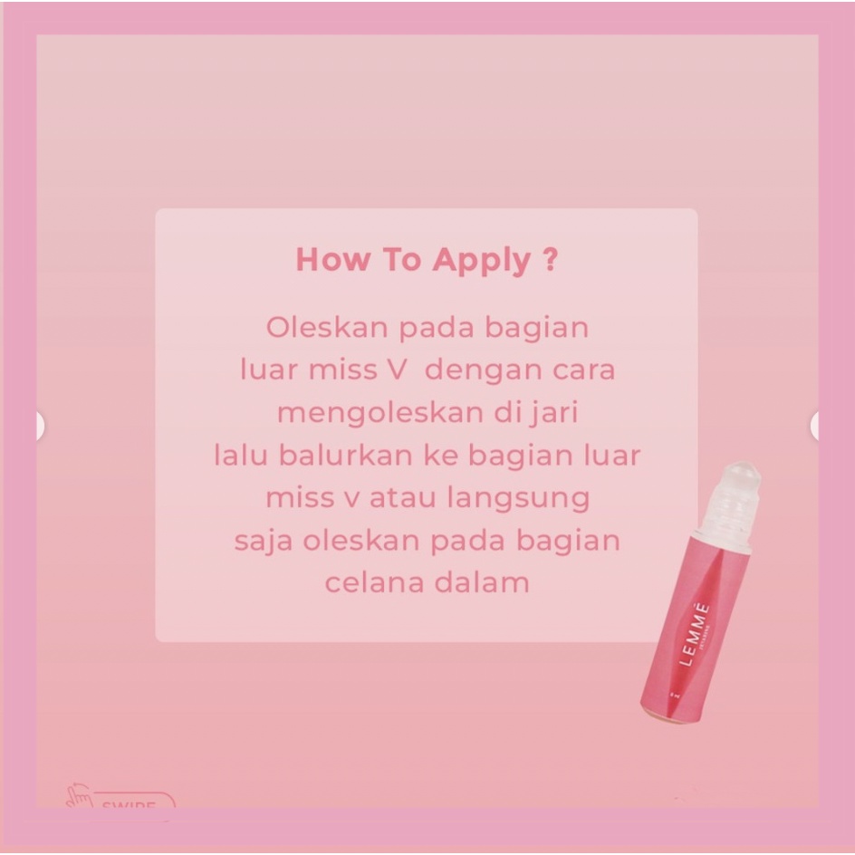 FITUR & BENEFIT - Mengharumkan area Miss V - Menghilangkan bau darah setelah haid - Aman digunakan untuk Miss V karena tidak mengandung alkohol dan bahan kimia berbahaya - Dapat dipakai untuk bagian tubuh lain seperti leher, tangan, dll. - Membantu meningkatkan gairah pasangan saat bercinta - Aman digunakan tanpa alkohol - Parfum aroma Powdery dijamin pasangan suka - Lebih mudah digunakan dengan aplikator Roll On - Kemasan Travel , Praktis dibawa kemanapun