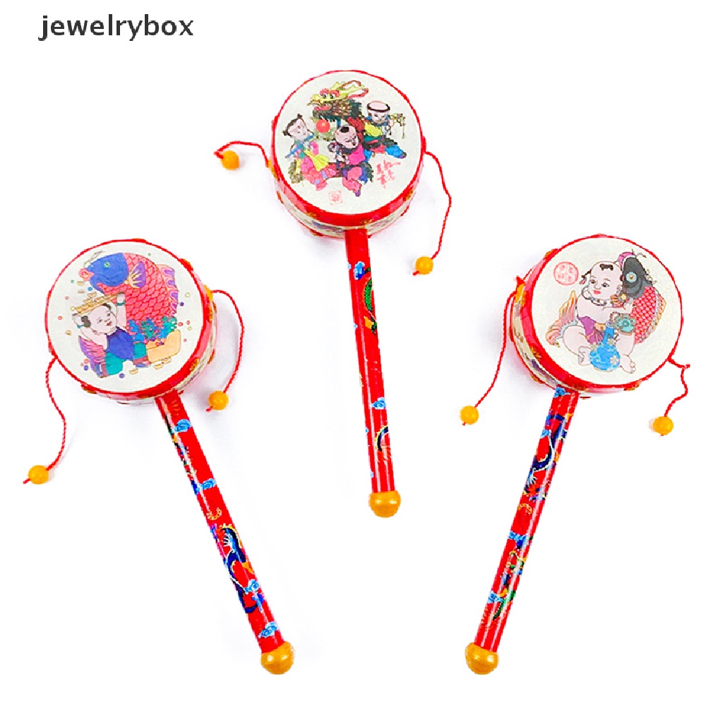 Ibu & Bayi > Mainan > Mainan Lainnya > [jewelrybox] 1pc Kartun Tamborin Cina Tangan Drum Mainan Klasik Tradisional Berputar Rattle Drum Tangan BellHand Drum Mainan Anak Alat Musik Butik