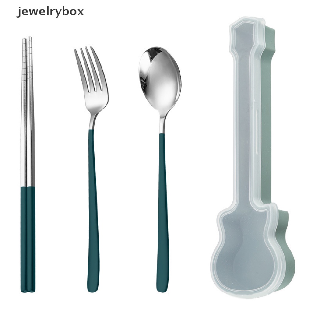 Perlengkapan Rumah > Peralatan Makan > Alat Makan > [jewelrybox] 3pcs Set Alat Makan Garpu Sendok Sumpit Makan Set Travel Sendok Garpu Kotak Gitar Butik