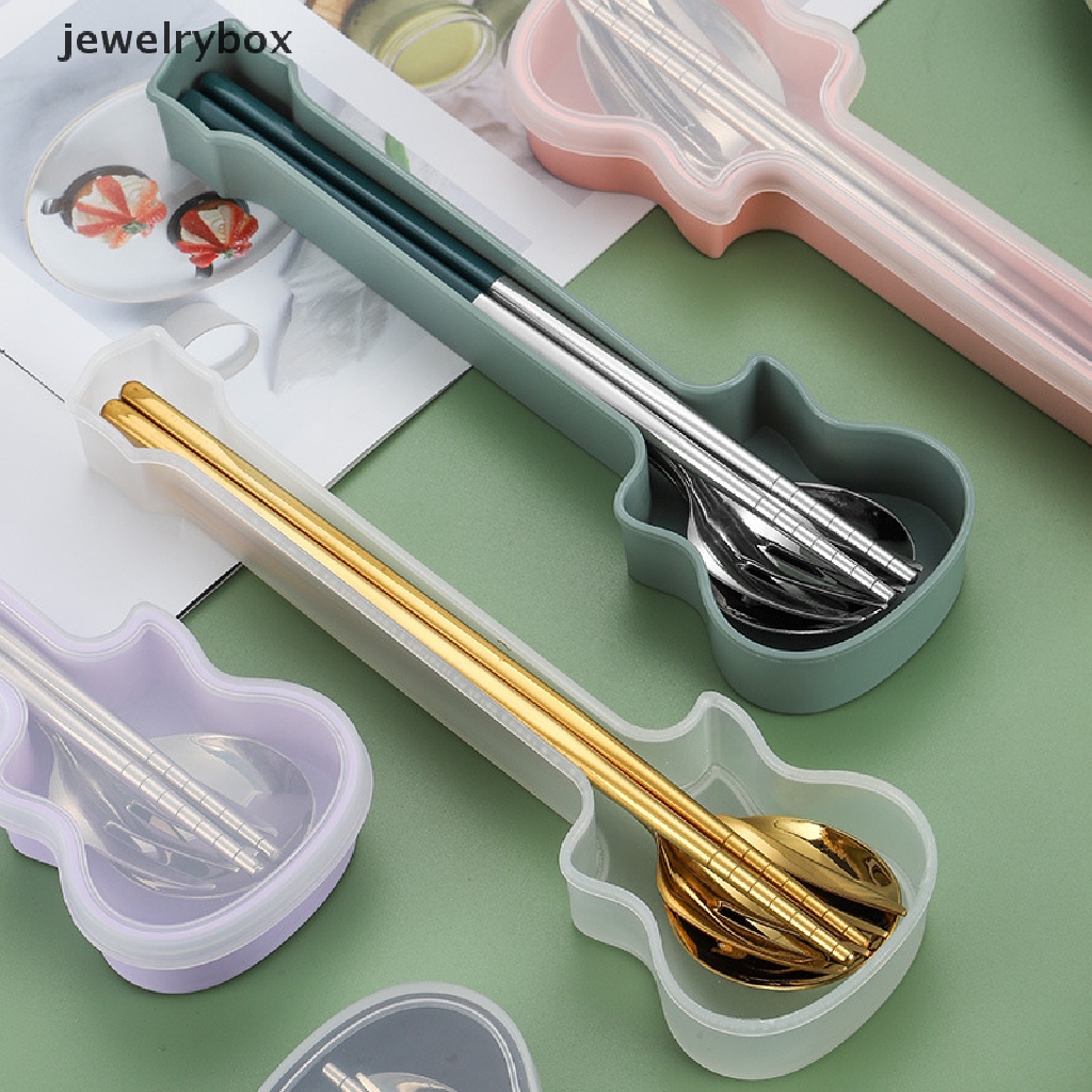 [jewelrybox] 3pcs Set Alat Makan Garpu Sendok Sumpit Makan Set Travel Sendok Garpu Kotak Gitar Butik