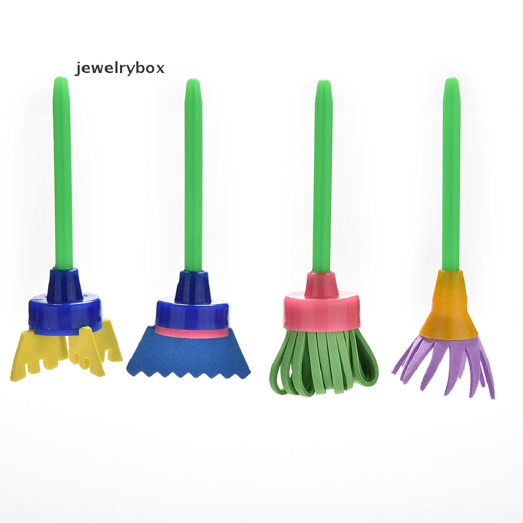 Detail [jewelrybox] 4pcs Spons Paing Brush Bunga Cap Anak DIY Mainan Gambar Graffiti Butik