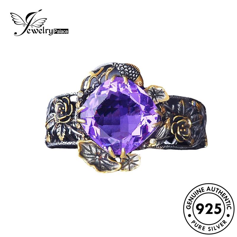 Detail Jewelrypalace Gelang Vintage Wanita925 Bunga Mawar Perak Asli Amethyst B594