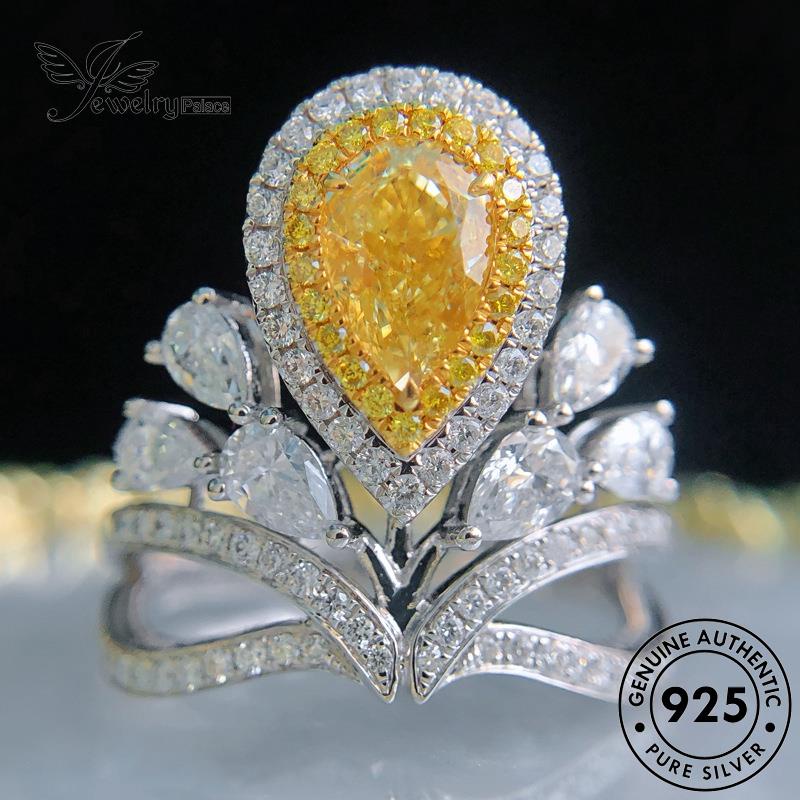 JEWELRYPALACE Original Silver Kawin Wanita Classic Cincin Asli 925 Murni Aksesori Citrine Nikah Silver Crown Perak Sterling korea Perhiasan R1940