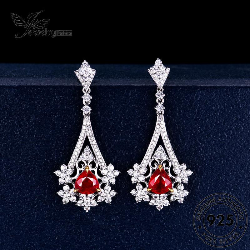 Detail Jewelrypalace Ruby Bentuk Perak925 Stud Pear Asli Anting Wanita E1269