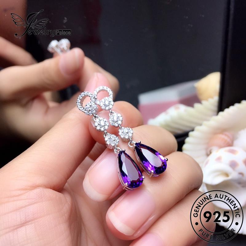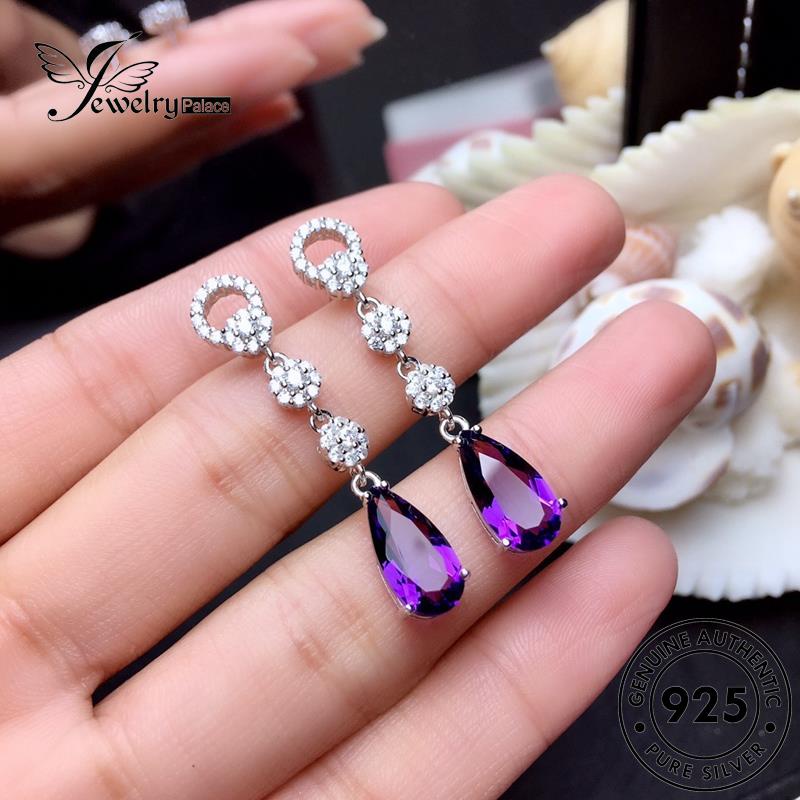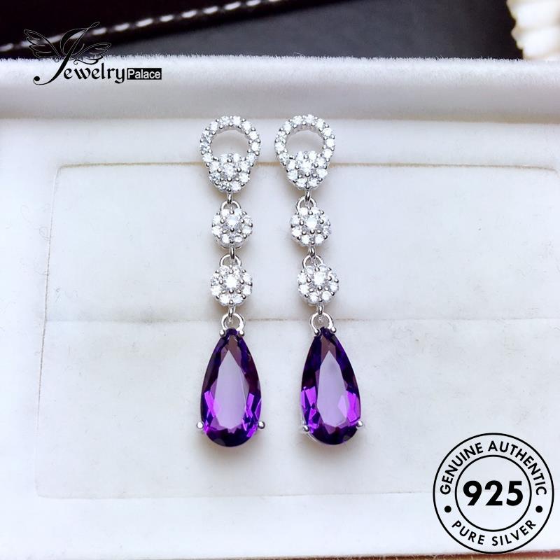Detail Jewelrypalace Wanita Pear Stud Bentuk Asli925 Anting Perak Amethyst E1293