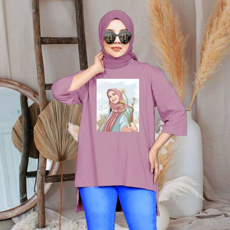 KAOS OVERSIZE SABLON PRINTING HIJAB BUNGA PREMIUM JUMBO LD 120CM PJ depan 70CM PJ BLKG 80CM TANGAN 7/8 BAHAN BABYTERRY PREMIUM(TEBAL,LEMBUT,ADEM,)