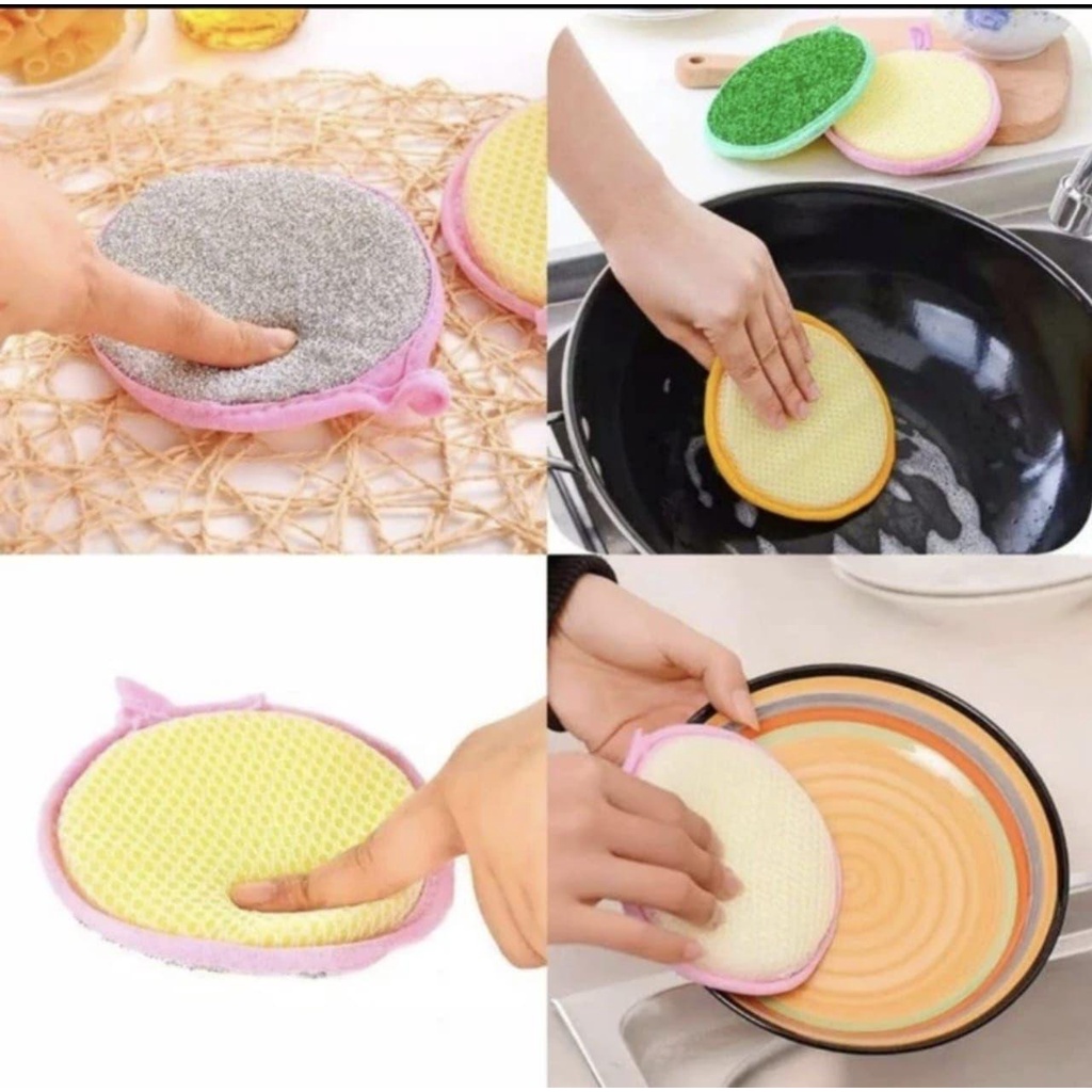 2 Sisi Spons Spons ini memiliki 2 sisi yang mana masing-masing sisi memiliki bahan yang berbeda sehingga memudahkan Anda saat mencuci piring dengan tekstur berbeda.