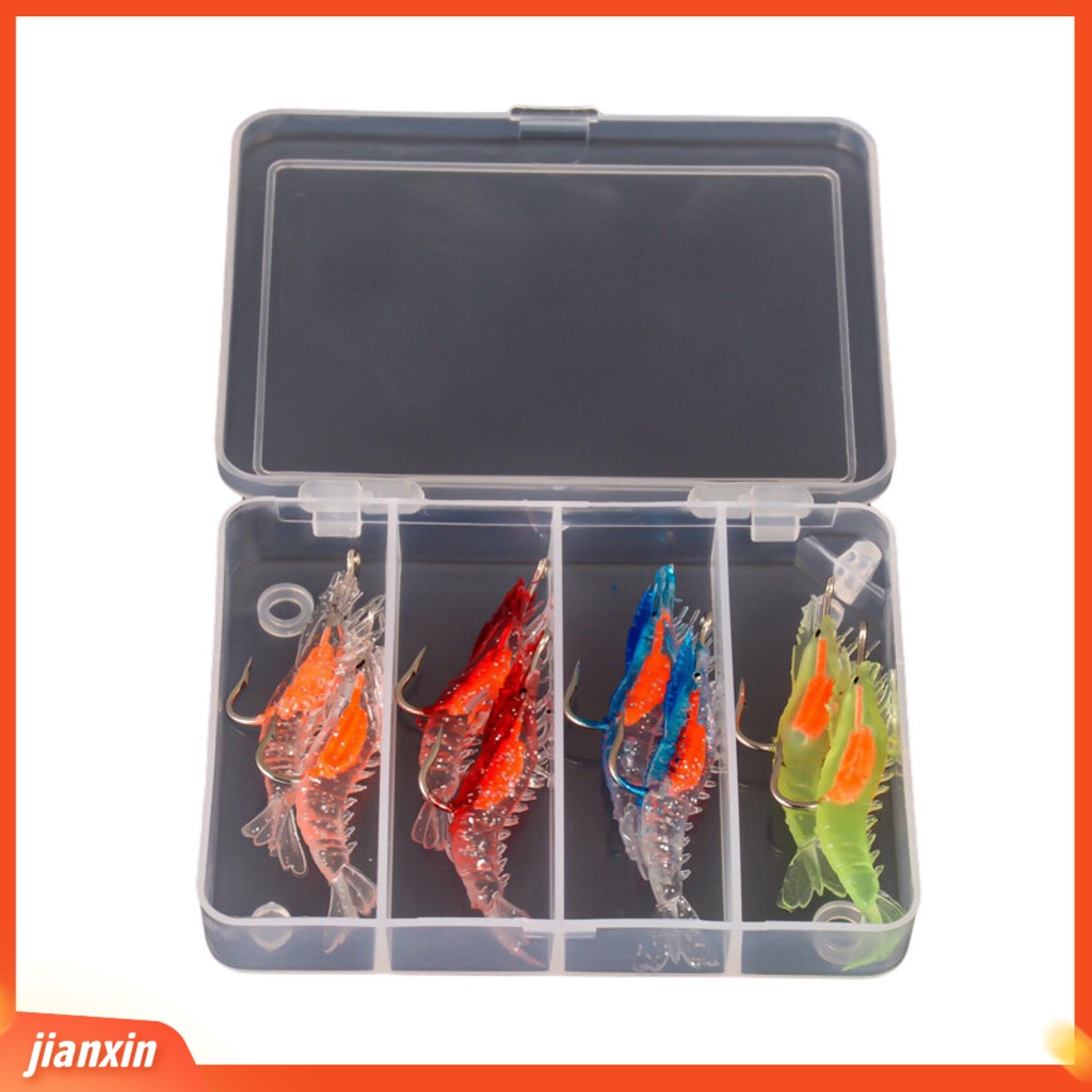 Detail [Jianxin] 1 Set 6cm/3g Umpan Udang Lembut Simulasi Tajam Kait Angling Karet Lembut Umpan Jalan Bercahaya Udang Umpan Luar Ruangan Memancing