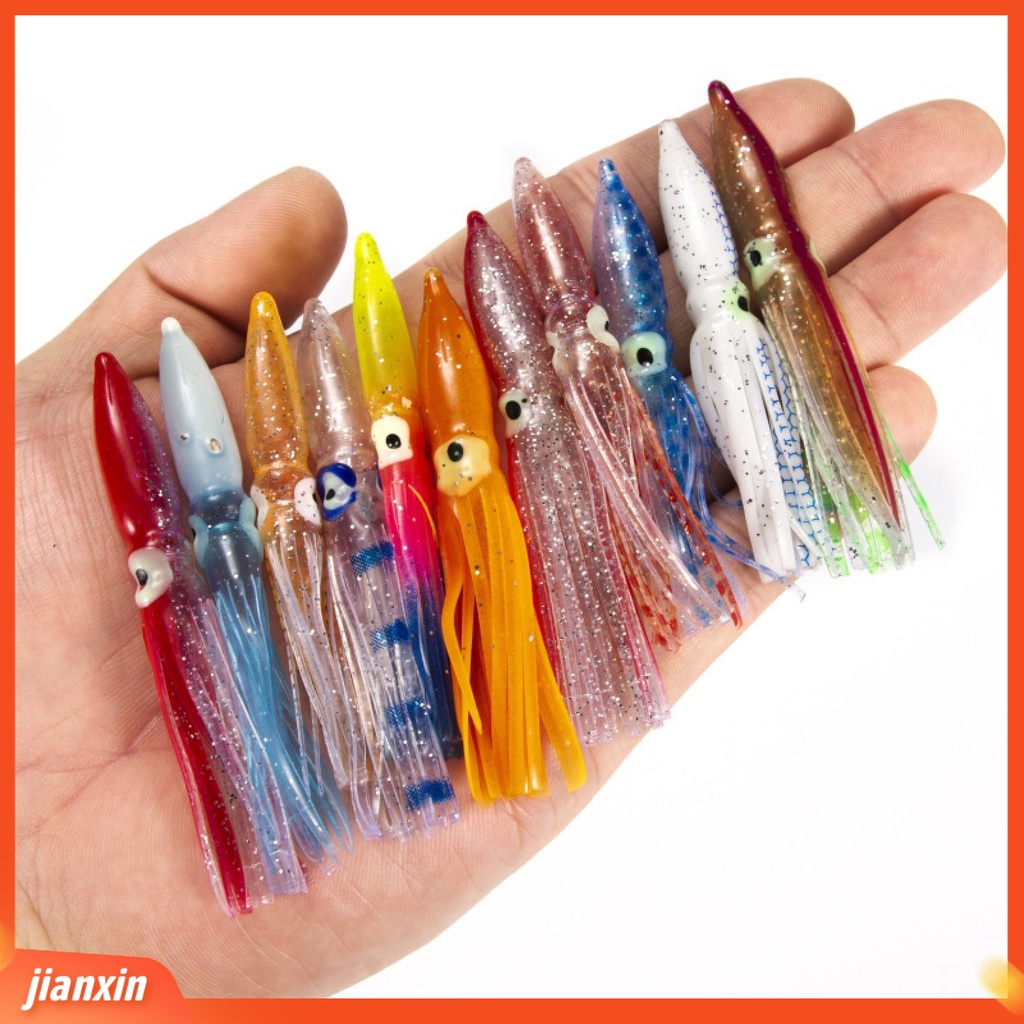 Detail [Jianxin] 10 Pcs Umpan Pancing Soft Bait Bentuk Cumi-Cumi Warna-Warni Ukuran 8cm