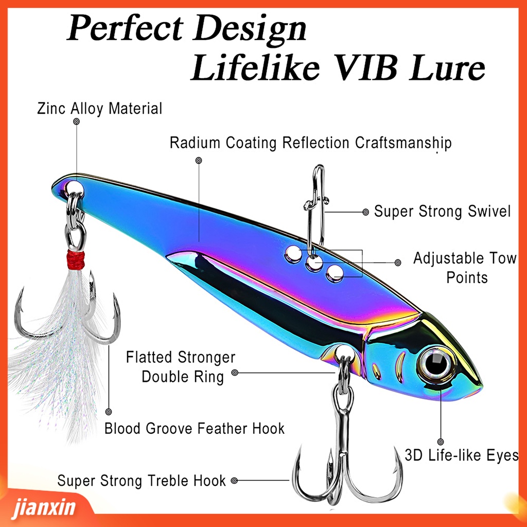 Detail [Jianxin] 5pcs Pemikat Pancing 3D Fisheyes Warna Terang Lapisan Reflektif Tajam Kait PP Kotak Disederhanakan Penuh Lapisan Universal Panjang Pengecoran VIB Logam Buatan Umpan Peralatan Memancing