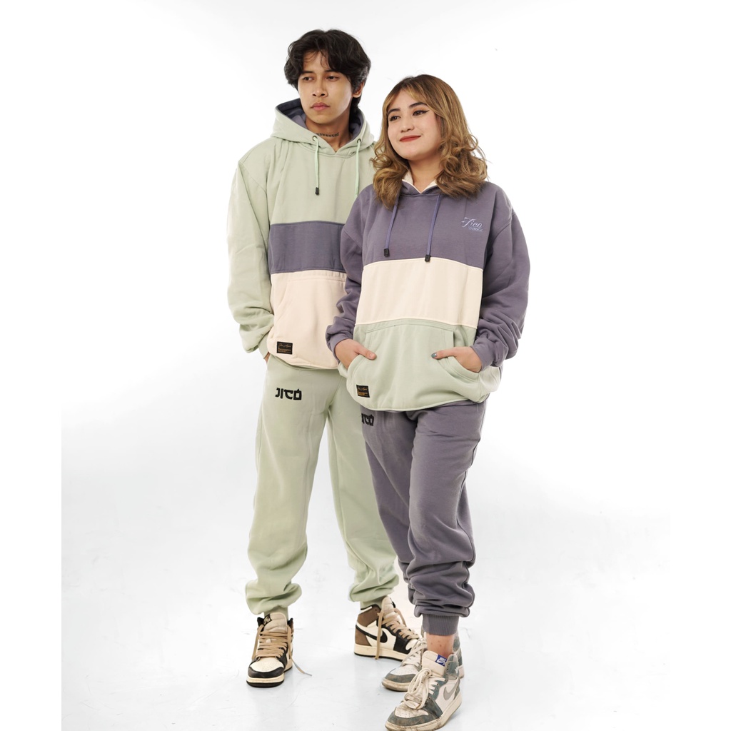 Detail Jico - One Set Hoodie Kombinasi Basic Bahan Katun Fleece Bordir Distro Kota Bandung M L XL XXL Terlaris