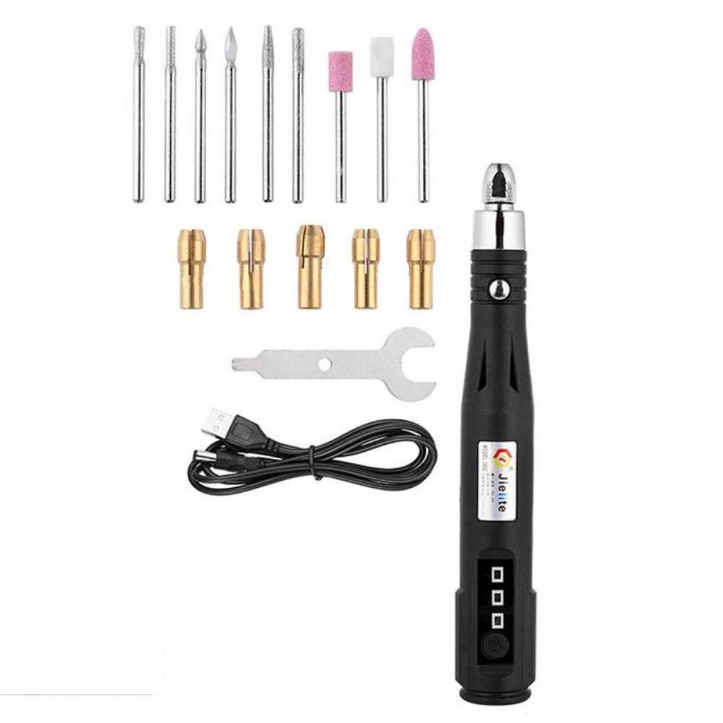 Kelengkapan Produk Rincian yang Anda dapatkan untuk pembelian produk ini: 1 x Jielite Bor Listrik Mini Grinder Alat Ukir Multifungsi 15000 RPM 30W - JL-5V 1 x Kabel USB 9 x Mata Bor 5 x Clamp 1 x Kunci Pas 1 x Panduan Penggunaan