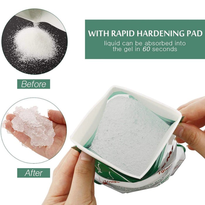 2. Tidak ada bau-ada partikel penyerap air polimer dalam tas. Ini bisa menyerap urin, muntah atau limbah cair lainnya dan mengubahnya menjadi gel yang tidak berbau, lembut, dan anti bocor.