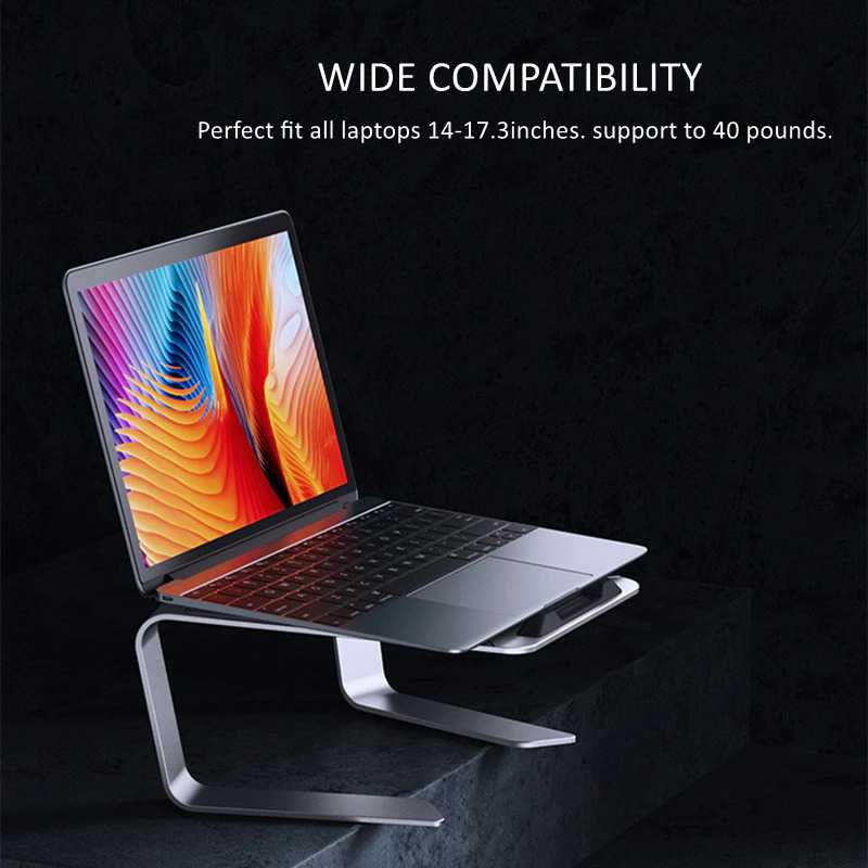 Holder ini cocok untuk menaruh laptop agar posisi lebih tinggi dari posisi sebelumnya. Sangat membantu Anda untuk memperoleh sudut pandang yang lebih nyaman. Stand juga membuat laptop tidak kepanasan karena sirkulasi udara akan jauh lebih baik. Fitur Menghantar Panas Stand holder untuk laptop initerbuat dari bahan aluminium yang berkualitas sehingga dapat menghantar panas laptop dengan baik. Sirkulasi udara akan lebih baik karena akan lebih banyak terkena aliran udara, sehingga laptop tidak overheat. Desain Ergonomis Stand holder ini memiliki desain yang ergonomis, tidak memakan banyak tempat dan juga sesuai dengan kebutuhan. Dilengkapi dengan silikon anti slip dan juga penahan silikon, mencegah laptop Anda terjatuh dari holder ini. Bahan Berkualitas Bahan stand terbuat dari bahan aluminium sehingga dapat menopang bobot laptop yang berat sekalipun seperti laptop gaming. Dapat memuat laptop dengan ukuran 11 hingga 17 inch.