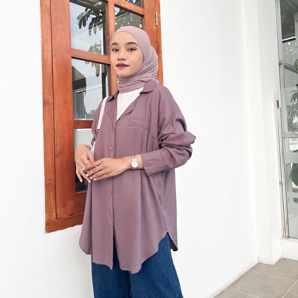 JIHAN OVERSIZE Bahan Rayon Lux Fit XL Deskripsi Blouse : LD ( Lebar Dada ) ± 120 cm PJ Baju ± 75 cm PJ Tangan ± 58 Deskripsi Detail : -Full Kancing Depan ( Busui ) -Pergelangan tangan kancing -Cutting Oversize -Kerah V