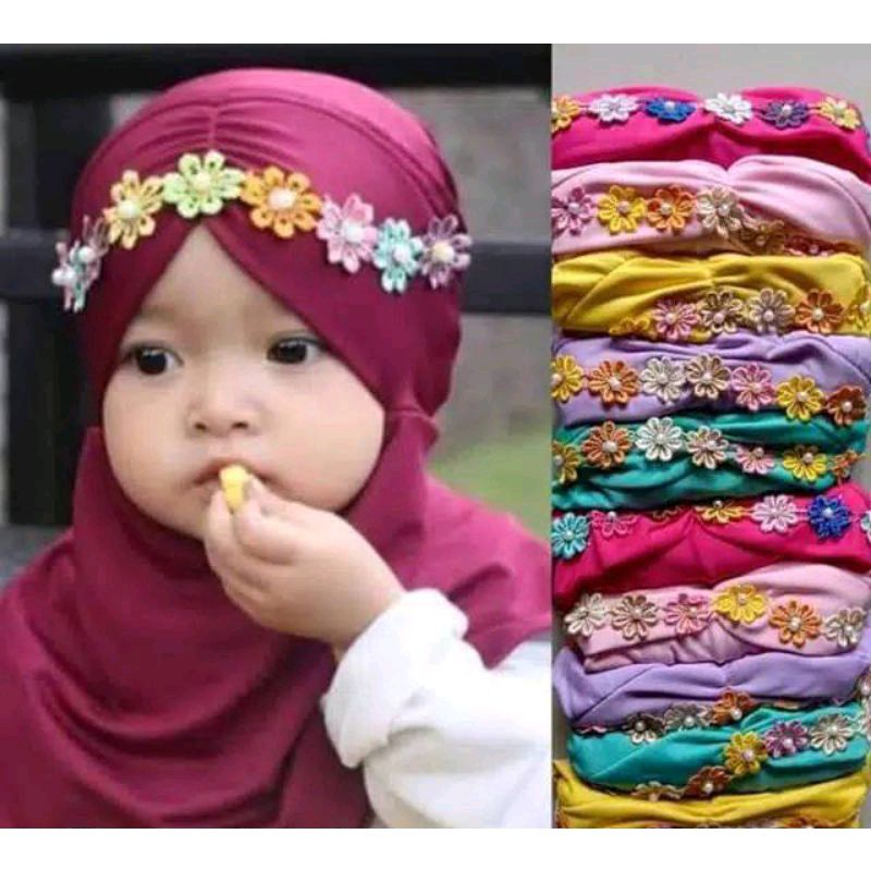 Jilbab bayi bunga melati usia 0-3 Tahun Bahan Jersey Balon