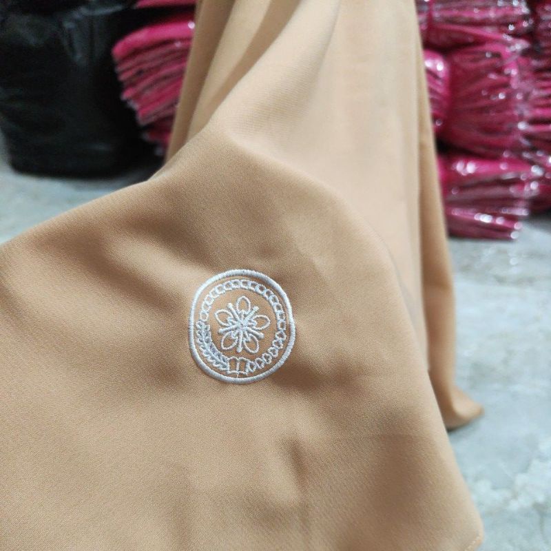 Detail jilbab Dharmawanita segiempat logo putih,logo bordir,110 x110