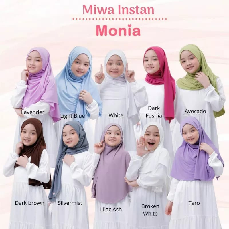 Fashion Muslim > Pakaian Muslim Anak > Hijab & Mukena Anak > Jilbab pasmina instant Miwa by Monia Hijab bahan jersey premium size M L XL usia 4 tahun - dewasa | pastan anak | kerudung