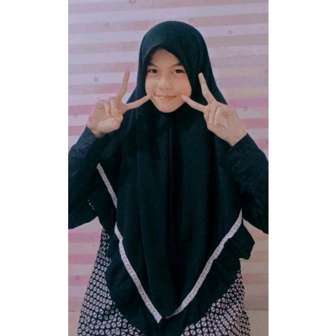 Hijab Segi Empat List Rempel Renda Hitam Premium