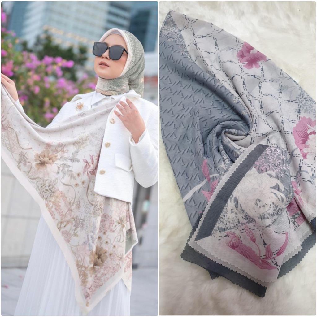 Detail Jilbab segi empat Motif Abstrak Bunga Scraft abstrak Bunga By Keyla Scraf