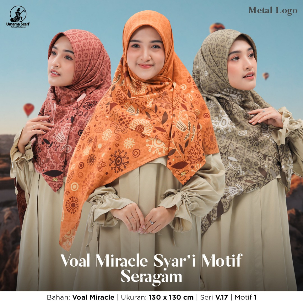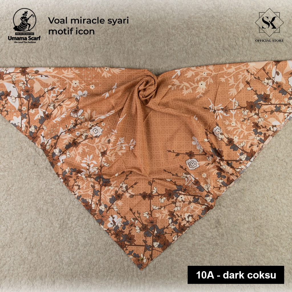 Detail Jilbab Umama Voal Miracle syari motif LOGO UM GOLD 130x130cm