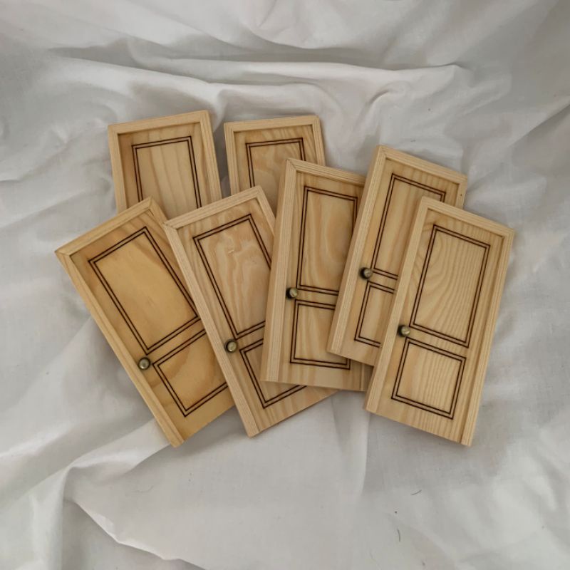 bahan kayu jati belanda, raw/unfinished. bisa di cat sendiri dengan acrylic paint atau spray paint.