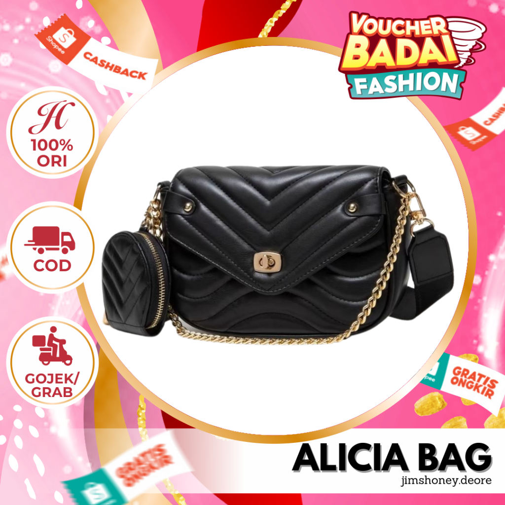 Noble, Elegance and Strong. Meet βAlicia Bagβ Sling or shoulder bag design with elegance and attitude. Desain klasik dengan kombinasi tali rantai warna gold tone serta di lengkapi dompet kecil mampu menambah kesan manis pada penampilan #JHLadies! Alicia Bag juga dapat dijadikan sling bag. Cocok banget untuk #JHLadies yang ingin terlihat kasual tapi elegant di waktu yang bersamaan.