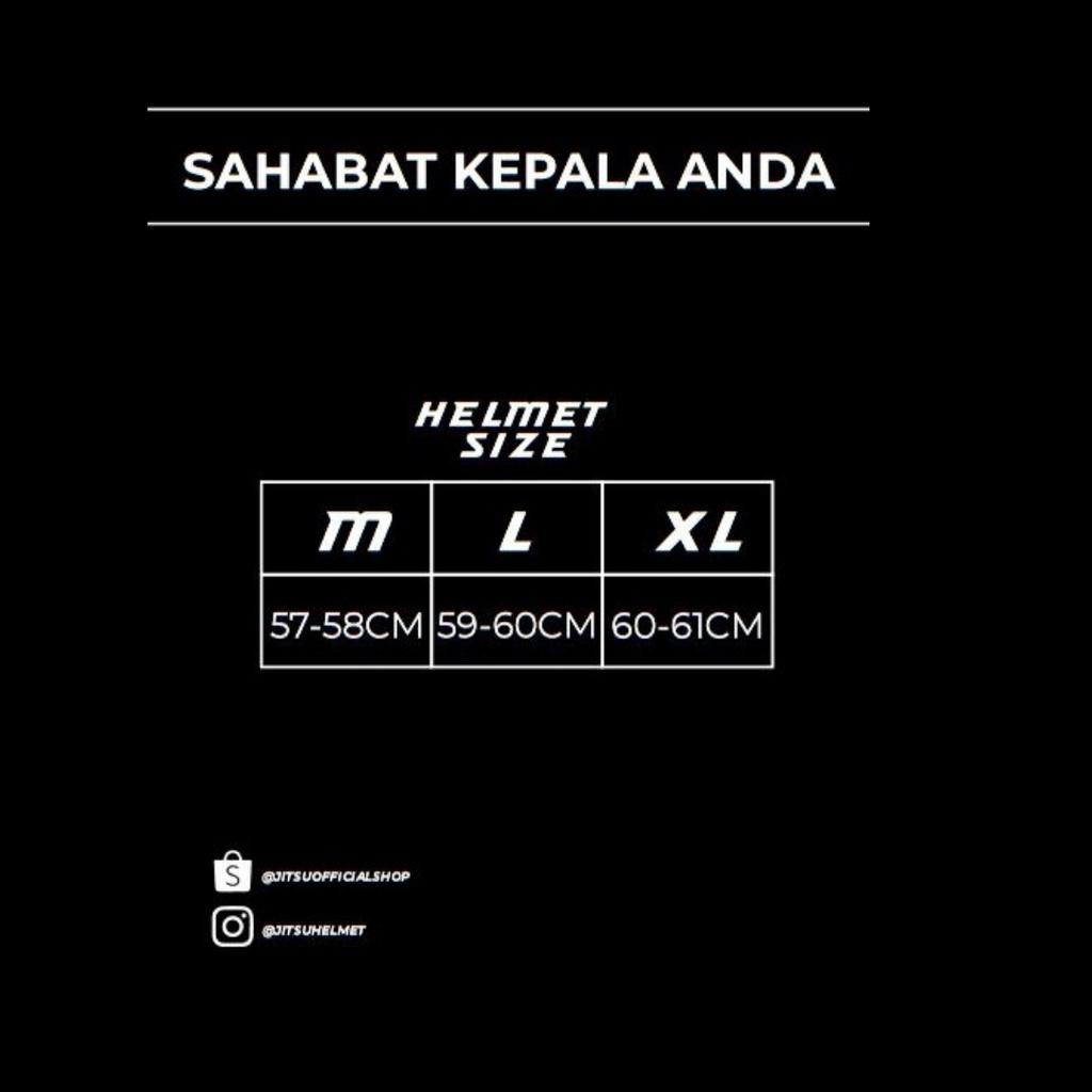 EVOHELM ORIGINAL AUTORIZED DEALER JITSU HELMET . Helm Jitsu Moto Engine Black Red - Jitsu JS1 (WARNA) Series Helm Half Face merupakan helm Half face dengan Desain trendy, cocok untuk pengendara motor harian. Helm JS1 Half face ini sudah dilengkapi : Cangkang / Tempurung diproduksi menggunakan bahan baku plastik ABS ( Acrylonitrile Butadiene Styrene ) dengan ketahanan tinggi terhadap benturan. Visor / Kaca penutup diproduksi menggunakan bahan Polycarbonate Injeksi dan dilapisi anti gores. Bantalan pipi dan kain busa bagian dalam dapat dilepas untuk dicuci. Tali pengencang menggunakan Double “D” Ring Sertifikan : Standar Nasional Indonesia ( SNI ) 1811-2007 Berat produk berkisar antara 1400 s/d 1450gr -mempunyai 3 ukuran . Size Chart : - Size M Lingkar Kepala : 57 - 58 cm - Size L Lingkar Kepala : 59 - 60 cm - Size XL Lingkar Kepala : 61 - 62 cm