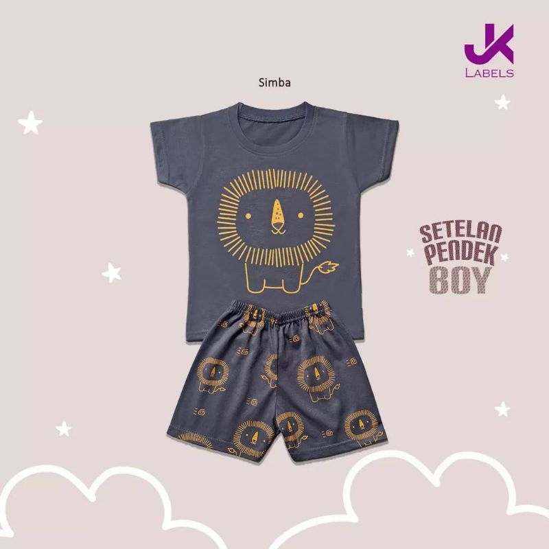 ***JK Labels kini hadir setelan khusus buat jagoan cilik anda. Setelan pendek yang didesign simple dengan sentuhan motif-motif cool dan simple yang bikin makin kece. Terbuat dari bahan katun yang adem dan nyaman digunakan sehingga cocok untuk beraktivitas sehari-hari ^^ Selain beraktivitas disiang hari untuk main, setelan ini juga cocok dijadikan sebagai baju tidur si kecil.. jadi sesuai selera dedenya ya bunda.