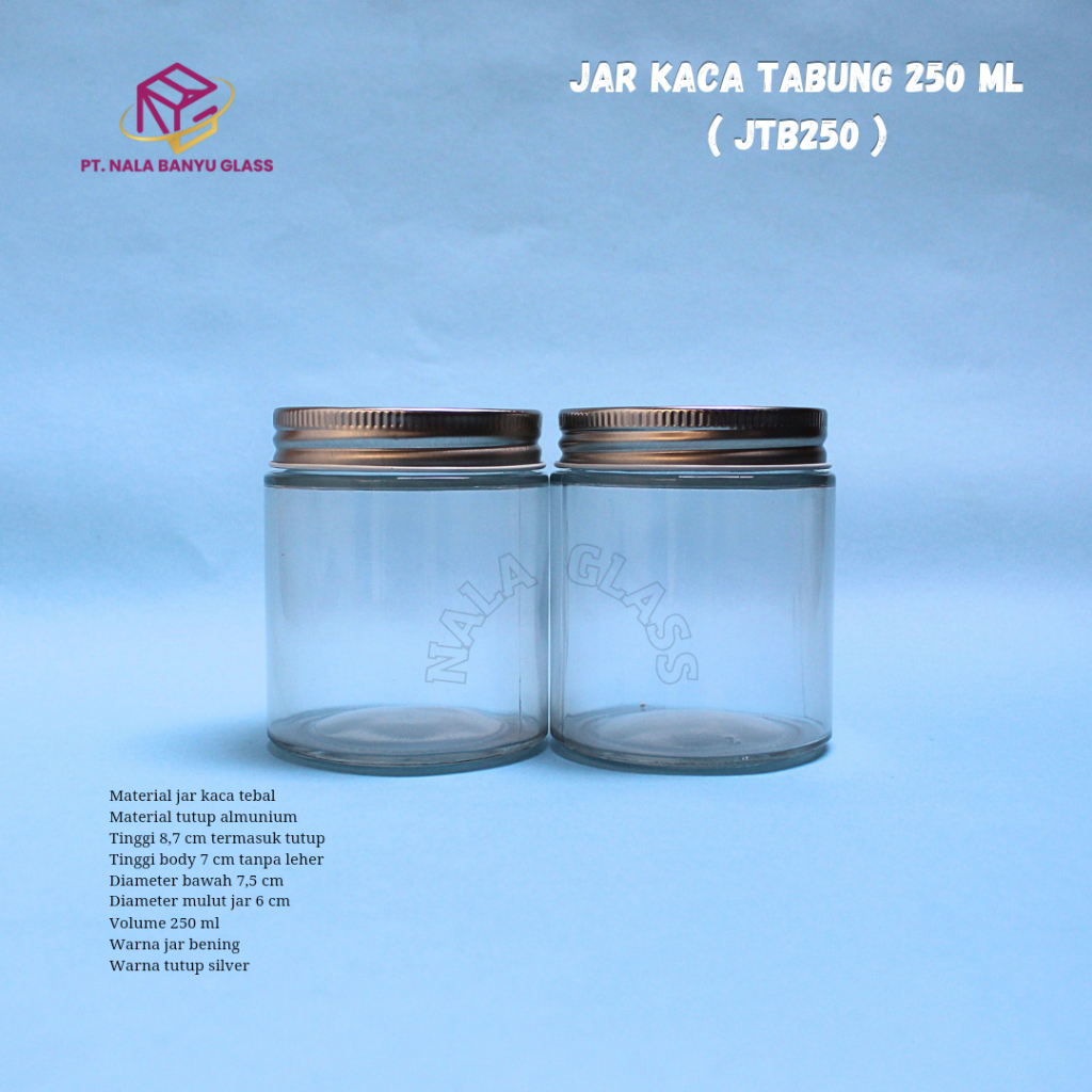 Detail JKTB250 jar kaca 250ml tutup almunium / mason jar kaca / toples kaca 250ml bundar