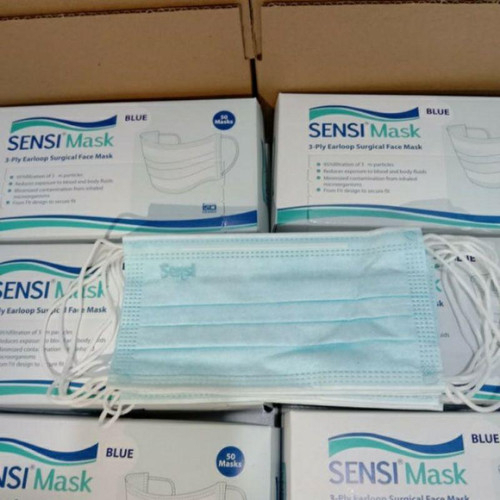 Masker Sensi Mask 3 ply Earloop Surgical Face Mask Dijamin 100% asli Ada EMBOSS SENSI Diproduksi oleh ARISTA LATINDO