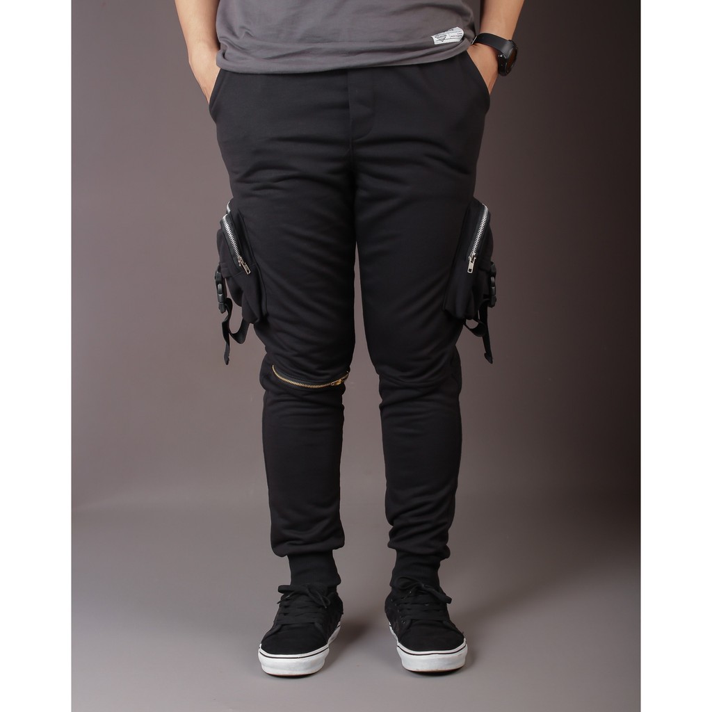 Detail Jogger trackpant denimpant hypebeast street war denik hiyam ripped list putih zipper