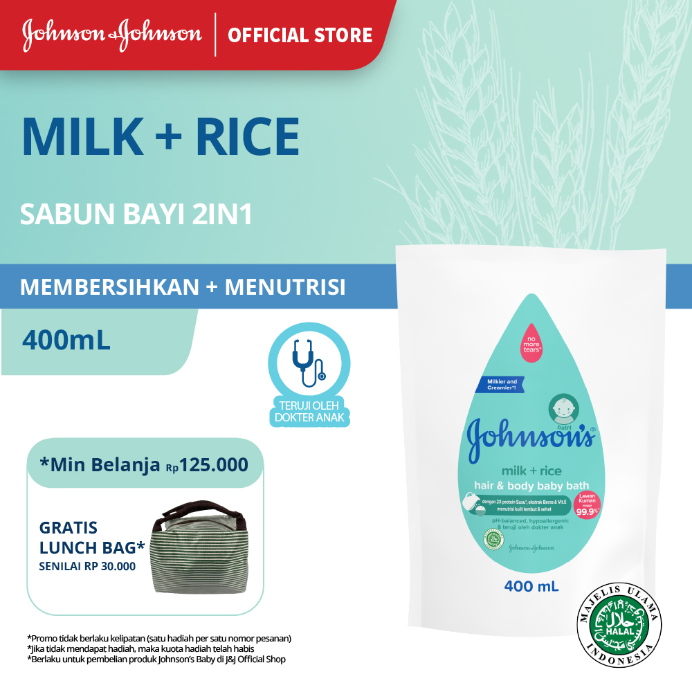 Gunakan JOHNSON’S® Milk + Rice Hair & Body Baby Bath, yang diperkaya dengan ekstrak beras, protein susu, serta vitamin A dan E untuk membantu melembapkan dan menutrisi kulit*. Mampu melawan kuman hingga 99%, namun tetap lembut di kulit. Jadikan kulit bayi sehat, lembut, halus, dan cerah berseri serta wangi menyegarkan.
