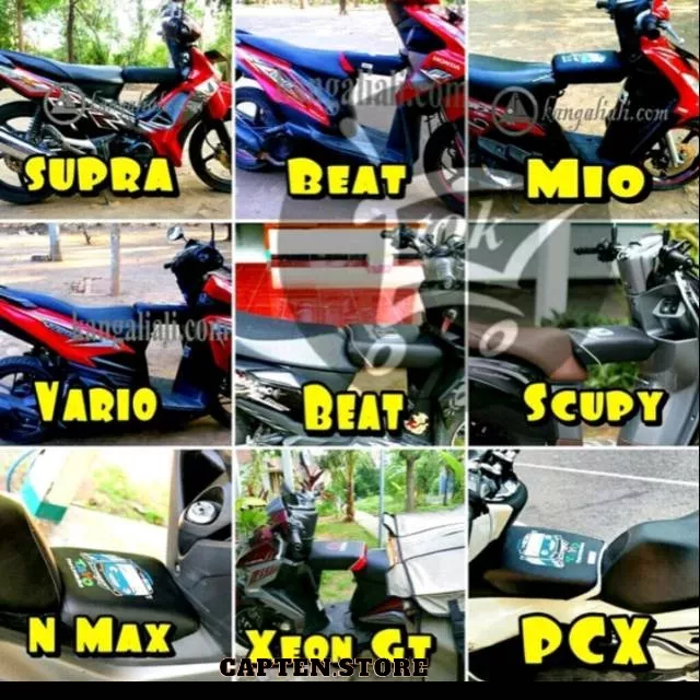 Cocok buat motor semua jenis motor matic dan bebek: Beat CBS Series Beat CBS-ISS Series Beat Deluxe Series Beat eSP CBS-ISS Beat Street Vario 125 Vario 150 Mio J (Motor harus ada hook depan) Mio GT (Motor harus ada hook depan) Mio Sporty Mio Z Mio M3 Mio 125 Mio Sporty Fino (Motor harus ada hook depan) Spacy Xride (Motor harus ada hook depan) Nex Scoopy Supra Jupiter Vega Smash Revo Dan sebagainya (jangan sungkan untuk bertanya ya kak)