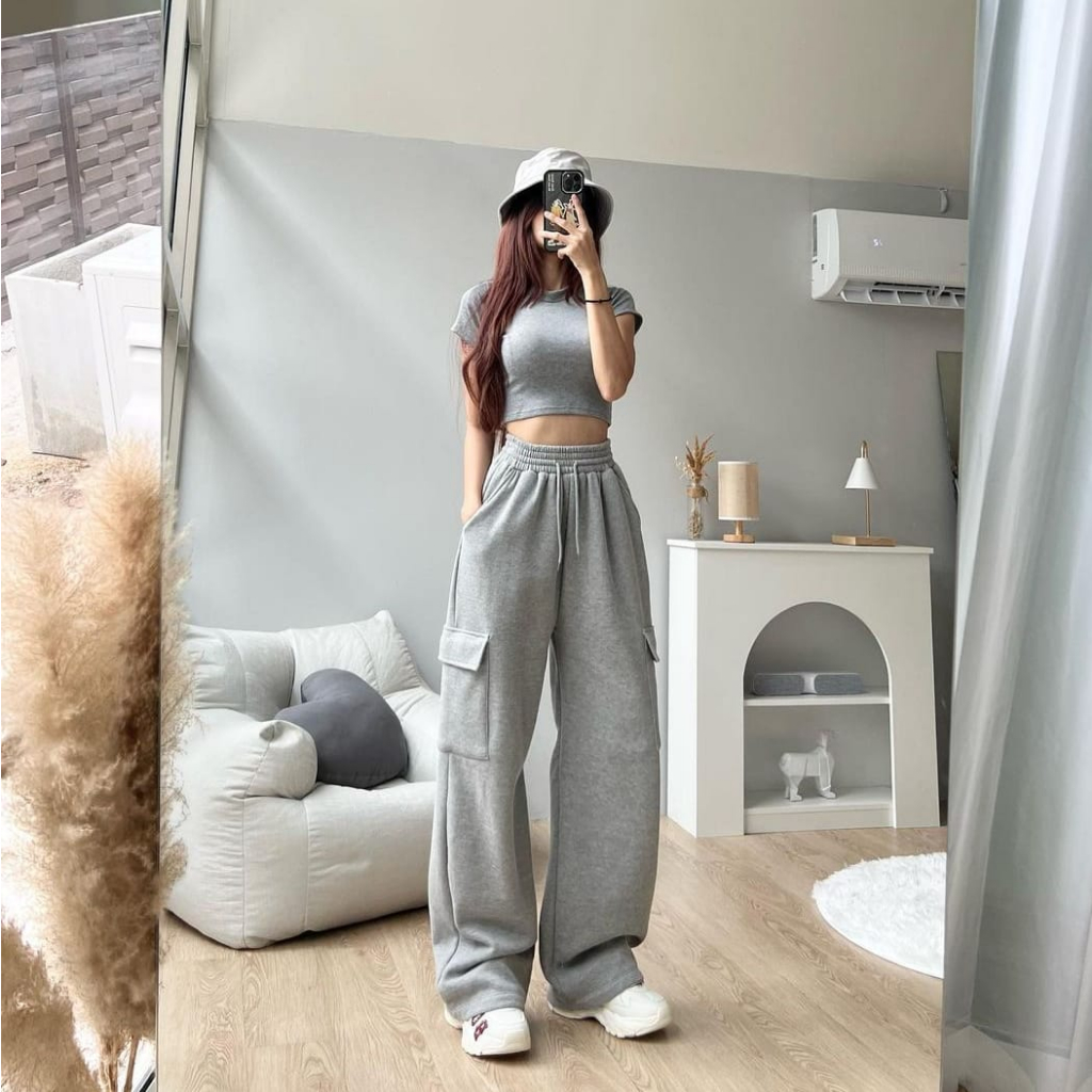 Detail JOOY BASIC CARGO PANTS - CELANA KULOT WANITA - CELANA PANJANG
