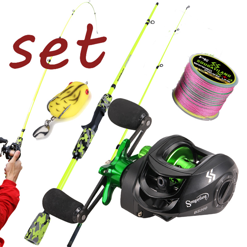Detail Joran dan Reel 1.8M 2 Bagian Casting Fishing Rod dan 7.2:1 Rasio Gear Rem Magnetik Baitcasting Reel Memancing Baris Lure Combo Set