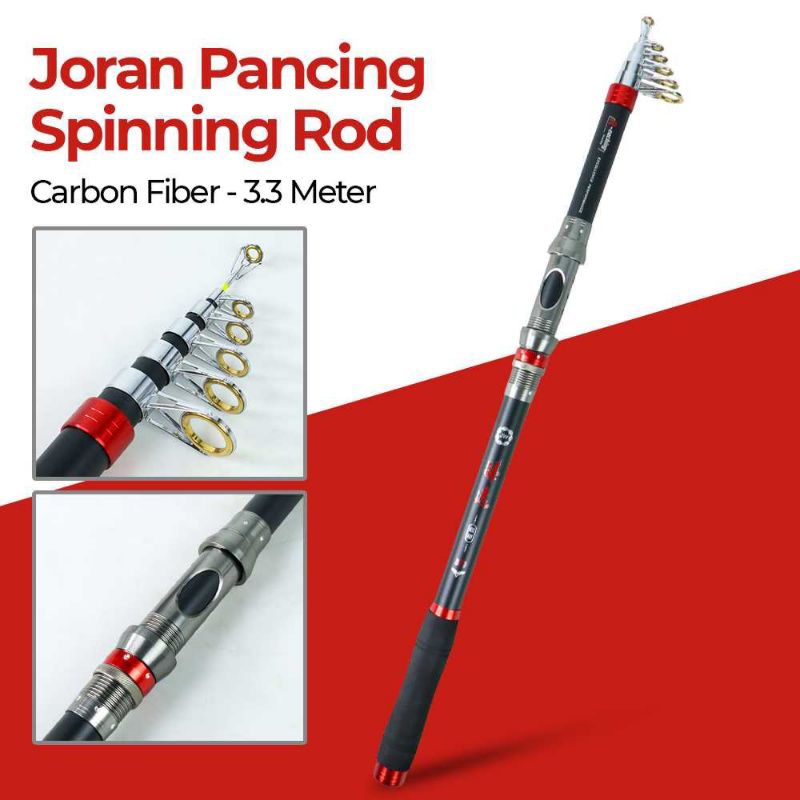 Detail Joran Pancing Carbon Fiber Spinning Rod Portable Murah& Kuat Super Ringan Pancingan Ikan Telescopic Panjang Tegek