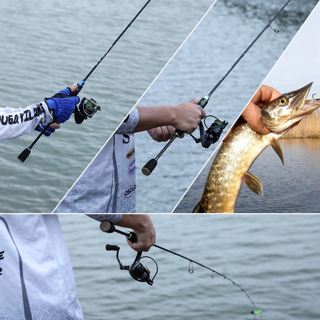 Pancing Jenis: Spining Warna Hitam Panjang: 1.8m / 2.1m Menangani: Pegangan EVA Pegangan anti selip, nyaman dan tahan lama
